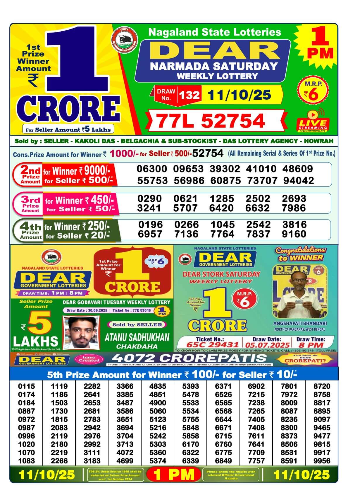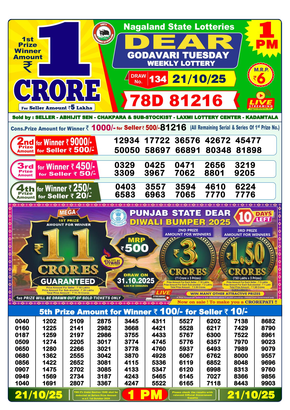 Nagaland State Lottery Result of Dear Morning 11:55 AM Live on Lottery Sambad.