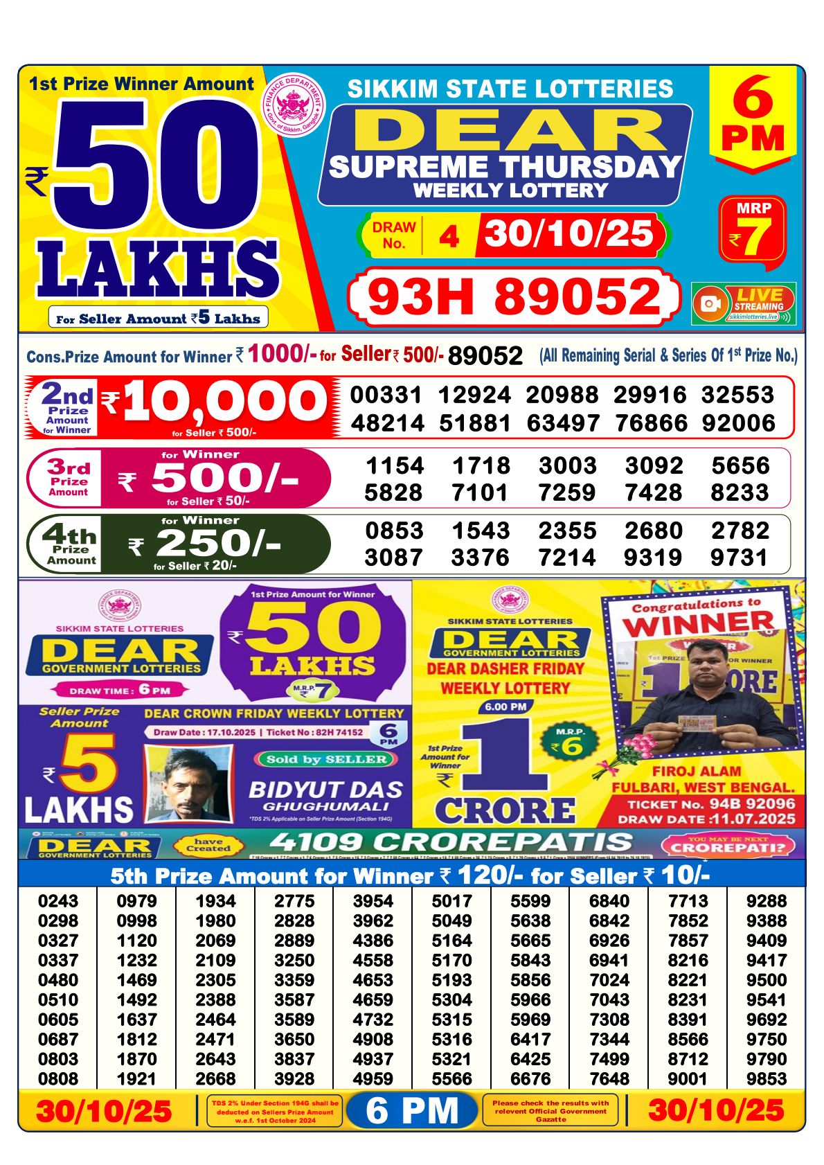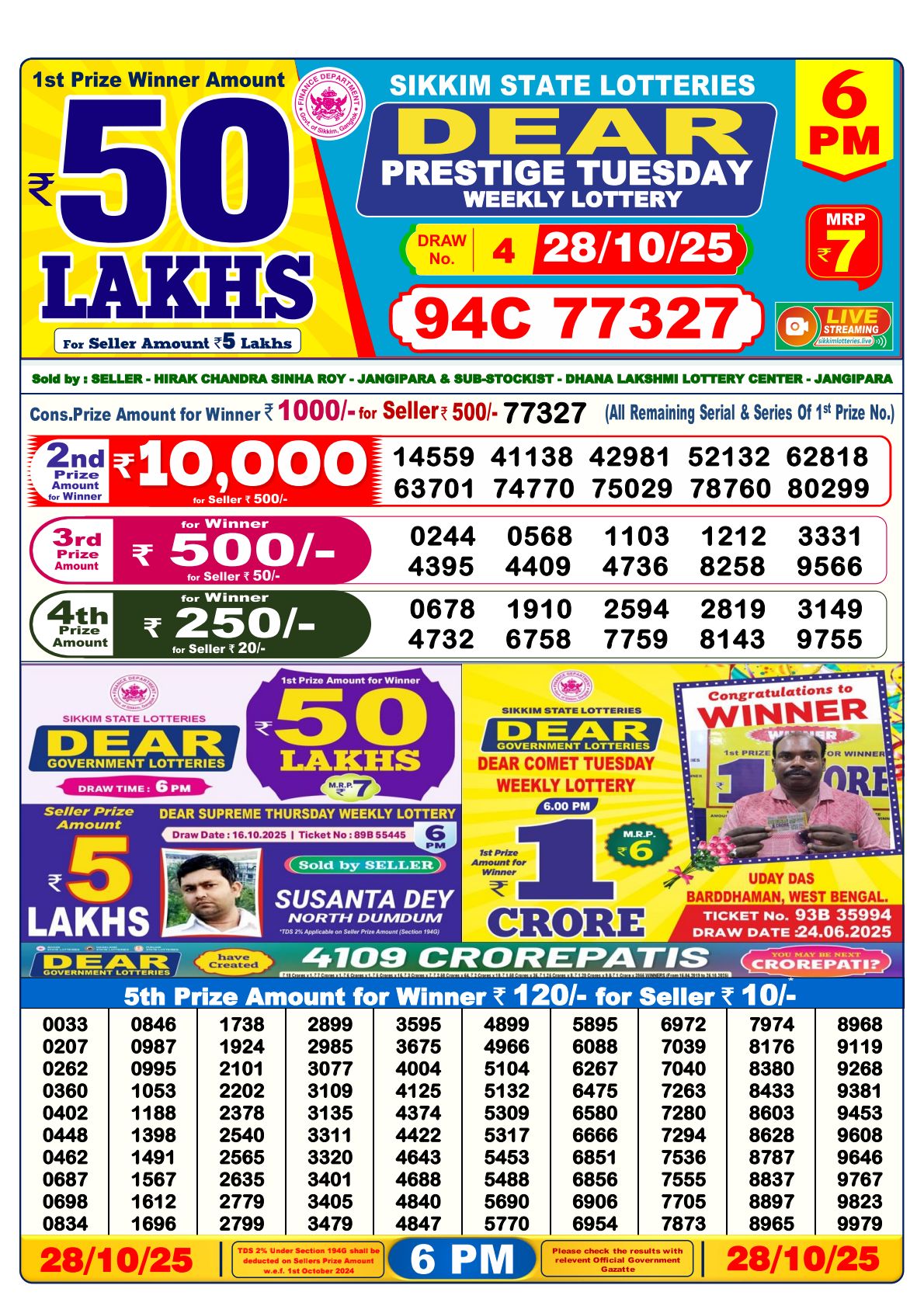 Nagaland State Lottery Result of Dear Day 6:00 PM Live on Lottery Sambad.