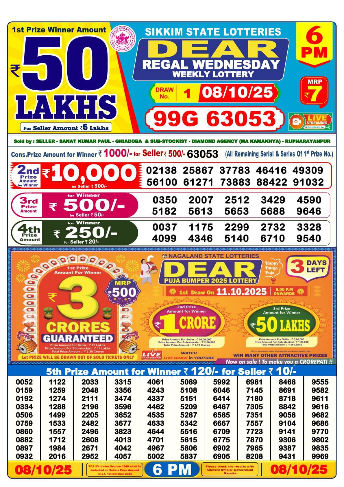Nagaland State Lottery Result of Dear Day 6:00 PM Live on Lottery Sambad.